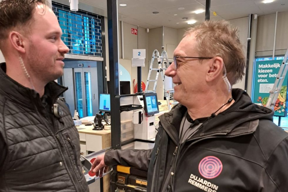 “Bij dit soort projecten wordt de complete winkel in 1 week vernieuwd. Er zijn dagelijks 60 tot 70 mensen tegelijkertijd werkzaam én er is veel lawaai. Daarom zijn we op zoek gegaan naar een communicatiesysteem waarmee we, zonder de handen te hoeven gebruiken, duidelijk met elkaar op afstand kunnen communiceren.